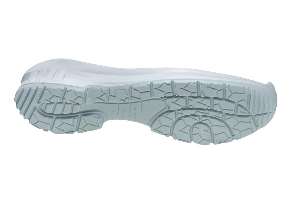 Ultralätt slät mikrofiber med slående högfrekvent prägling, bekväm passform tack vare sömlös skodesign, tåskydd, TPU-förstärkning vid hälen för stabilisering, dammskydd, funktionellt foder av ventilerande textil och mikrofiber, avtagbar komfortinnersula ERGO-SOFT ESD.