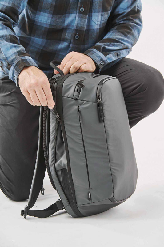 Intelligent väderskydd. Den vattentäta ryggsäcken Aeronaut 25 skyddar din bärbara dator och andra värdesaker genom att hålla väta ute med vattentäta dragkedjor och förstärkt vattentätt lager. Med ergonomiska, justerbara axel- och bröstremmar samt en vadderad ryggpanel med luftgenomströmning. Denna ryggsäck håller dig bekvämt sval och organiserad. Aeronaut Backpack 25 har också en RFID-blockerande ficka och en expansionspanel med dragkedja för att öka kapaciteten från 25 liter till 35 liter när du behöver det.